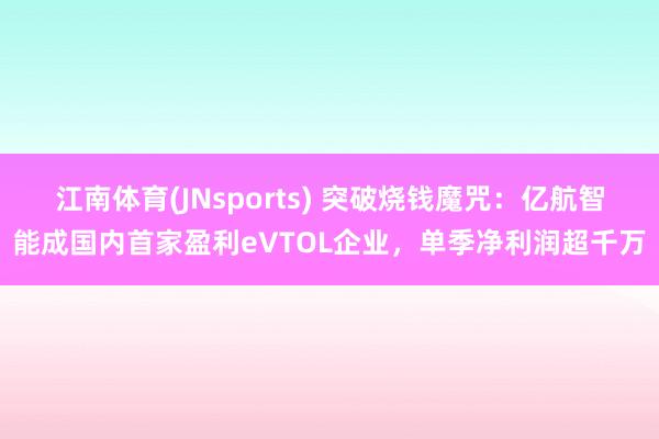 江南体育(JNsports) 突破烧钱魔咒:亿航智能成国内首家盈利eVTOL企业,单季净利润超千万【太平洋科技快讯】刻下,亿航智能已得到中国民航局颁发的载东谈主eVTOL运营及格证(OC),成为巨匠首个集王人TC、PC、AC、OC四张中枢天禀的无东谈主驾驶载东谈主遨游器企业,追究买互市业化全链条。 2025年财报娇傲,公司第四季度罢了GAAP净利润1050万元,成为国内首家在通用司帐准则下罢了季度盈利的eVTOL厂商,突破行