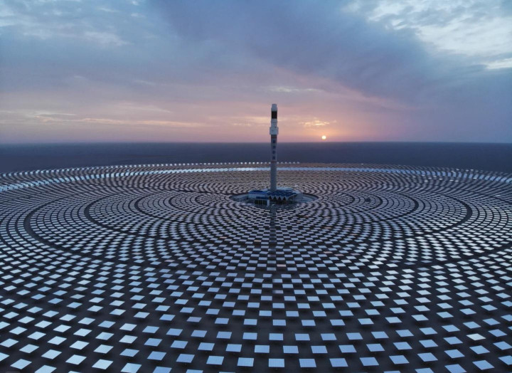 各人去大西北的戈壁滩上望望。那儿有一座科幻巨制般的敦煌光热电站。一万两千多面巨大的反射镜死死咬住太阳的轨迹。在东说念主类眼前,每一面镜子都像一堵不成高出的钢铁高墙。这座超等电站每年能减排二氧化碳35万吨。这相称于在大漠里诬捏种下1万亩参天大树。