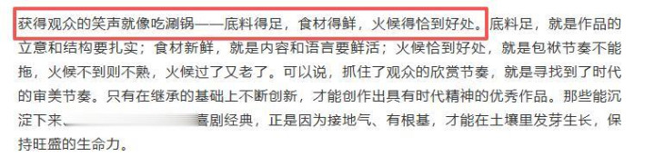 “得到不雅众的笑声就像吃涮锅,底料得足,食材得鲜,火候得恰到克己。”