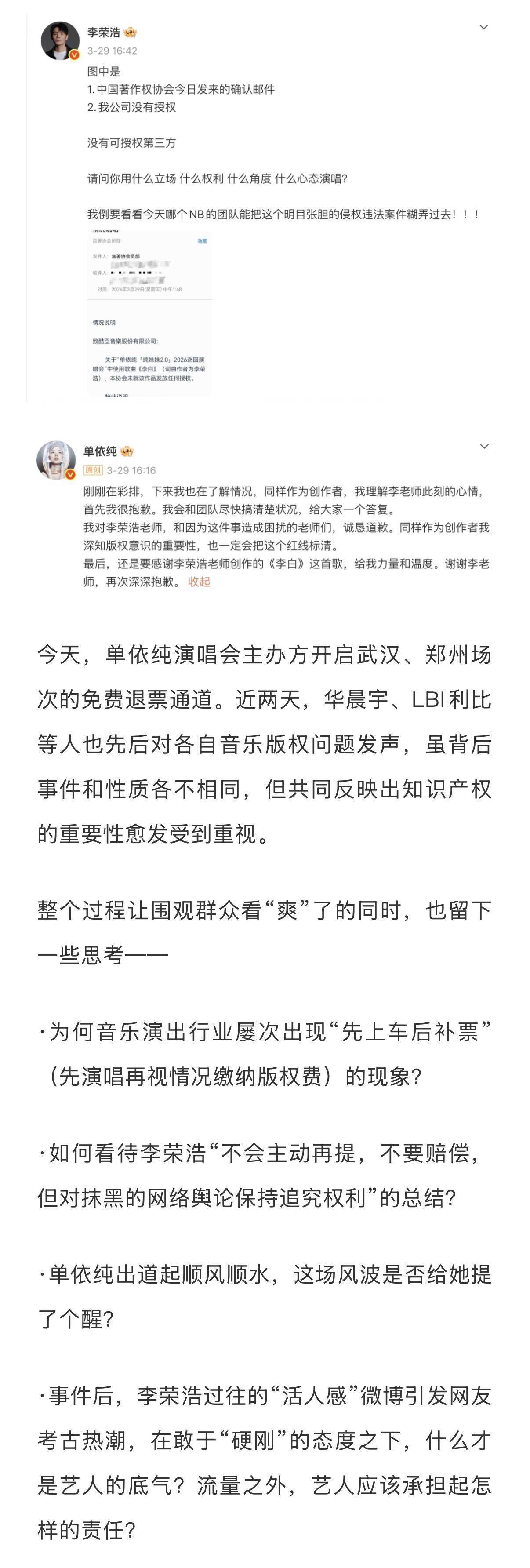 你可能不知说念,当年演唱会翻唱歌曲江南体育(JNsports)官网app下载,好多技术齐是先唱了再说。驾驭方揣着“过后补授权”的幸运情绪,认为只消上演结束找音著协交点钱就行。可此次李荣浩偏不按常理出牌,不仅拒绝补偿,还平直甩出未授权证明,把行业潜国法撕了个口子。讼师齐说了,这种明知被拒还上演的活动,驾驭方和歌手齐得担包袱,最高能罚到500万呢!