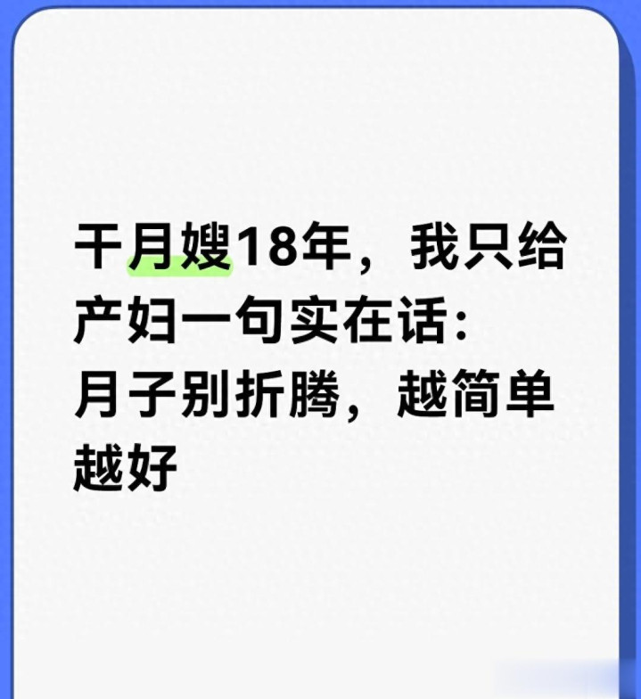 原因很浮浅:月子这件事,不是作念得越多越好,而是越浮浅越好。