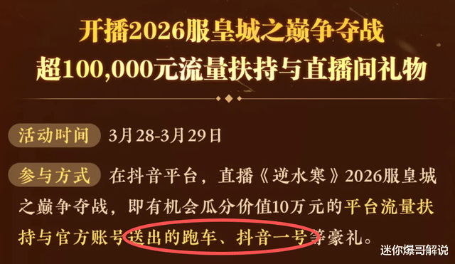 步入2026年,逆水寒黄金服迎来周年服【2026】,官方再次在赛事构建上拿出血本,推出年度重磅赛事——皇城之巅,官方英气砸下筹划55万现款赛事奖金,在当下MMO游戏圈,号称实打实的“土豪级”参加。