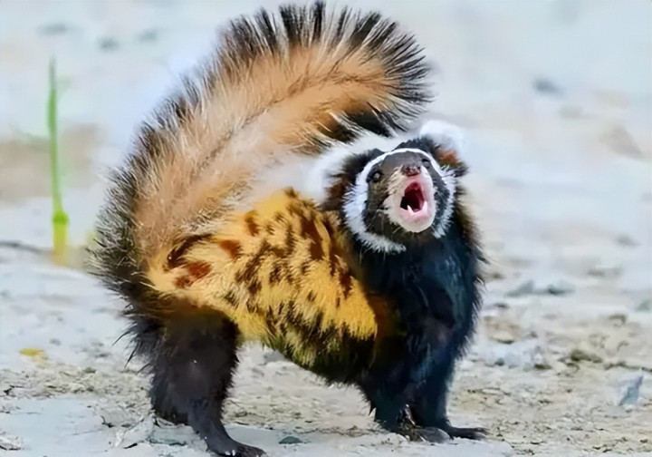 与此同期,它们会短距离朝着来犯者小跳,养精蓄锐的勒索。虎鼬的肛门两侧的臭腺会开释出浓烈刺鼻的骚臭味,这种气息极为浓烈,足以让天敌眼泪直流、恶心后退。