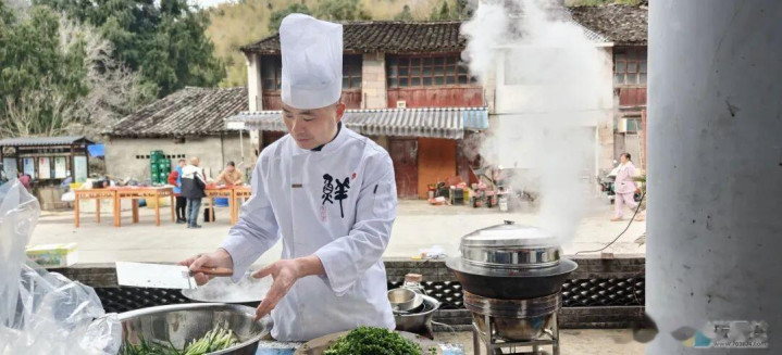 朝晨五点,永嘉县城仍隐敝在静谧的夜色中,叶可东已急促起身。这天,他要奔赴的场地不是自家餐馆的后厨,而是溪下乡陈山头村——永嘉县最偏远的村庄之一。前一晚他已备好部分食材,此刻正往车里搬运特制肤浅灶台、锅碗瓢盆,以及在自家店里加工好的半制品,小轿车的后备箱塞得满满当当。